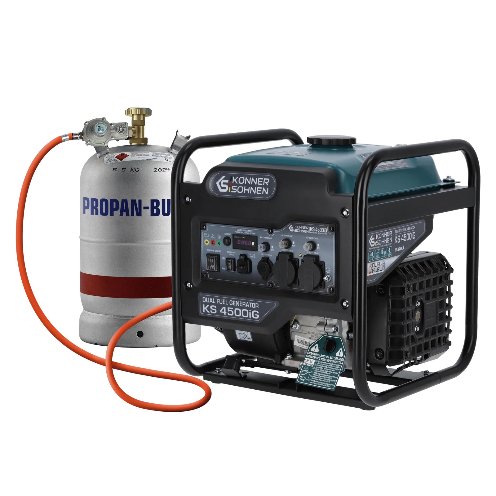 "Könner & Söhnen" Dual-Inverter-Generator KS 4500iG - 4.2kW Nennleistung - Benzin / Gas Motor - 230V
