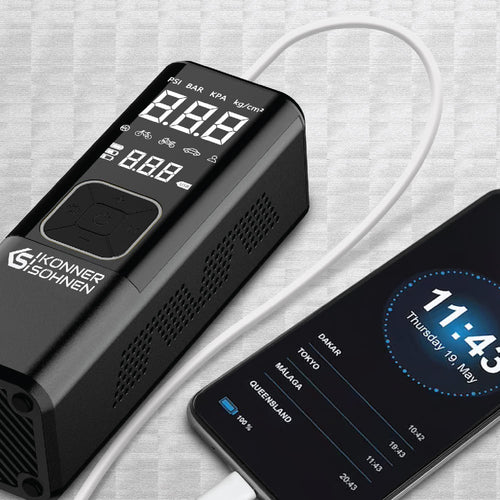 Der KS P20 Kompressor ermöglicht es, Reifen in wenigen Minuten aufzupumpen, ohne an eine Stromquelle angeschlossen werden zu müssen. Ausgestattet mit einer Autostopp-Funktion – automatische Unterbrechung der Luftzufuhr, sobald die festgelegten Parameter erreicht sind.