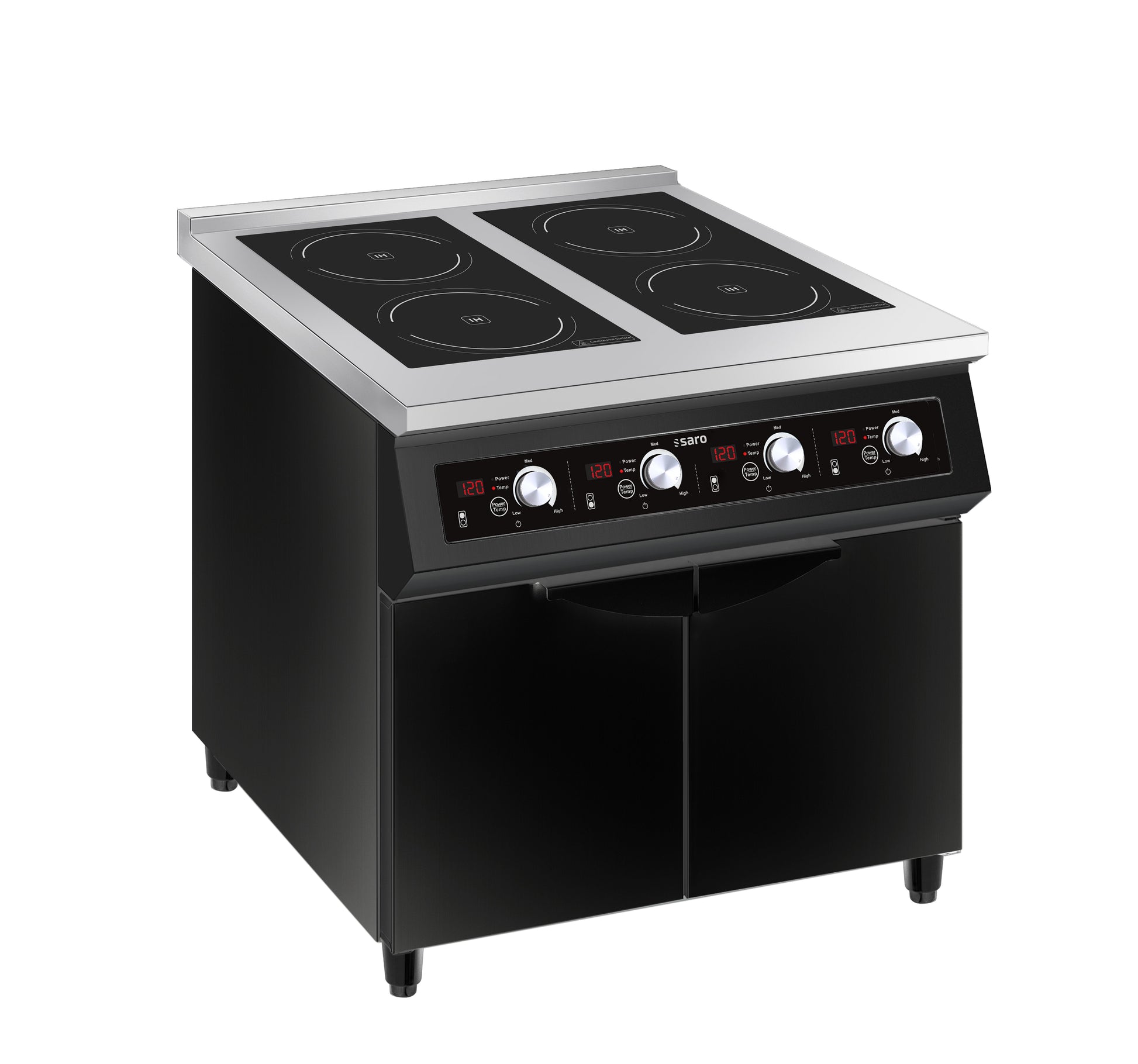 - Induction hob with 4 cooking zones and 2 base cabinets with doors