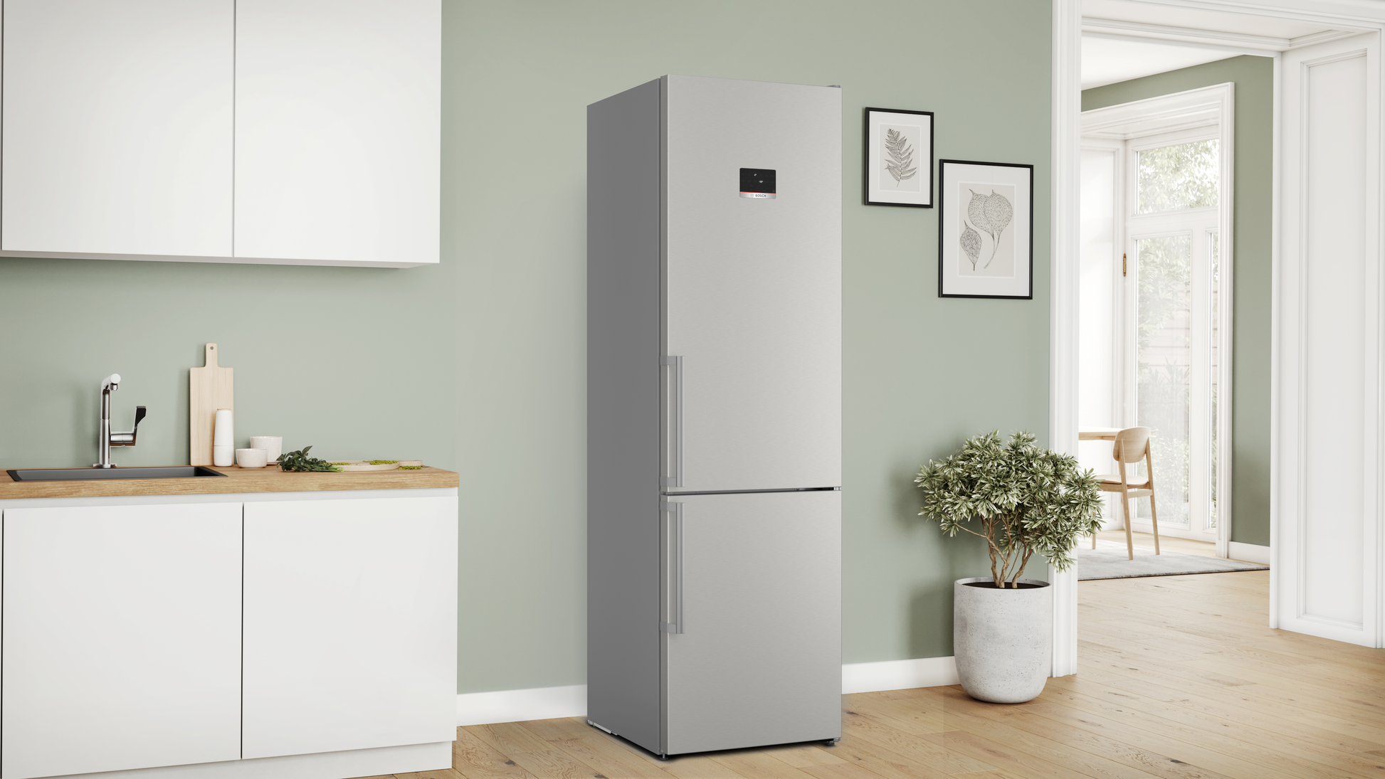 Bosch Serie 6, Freistehende Kühl-Gefrier-Kombination mit Gefrierbereich unten, 203 x 60 cm, Edelstahl (mit Antifingerprint) KGN39AIBT