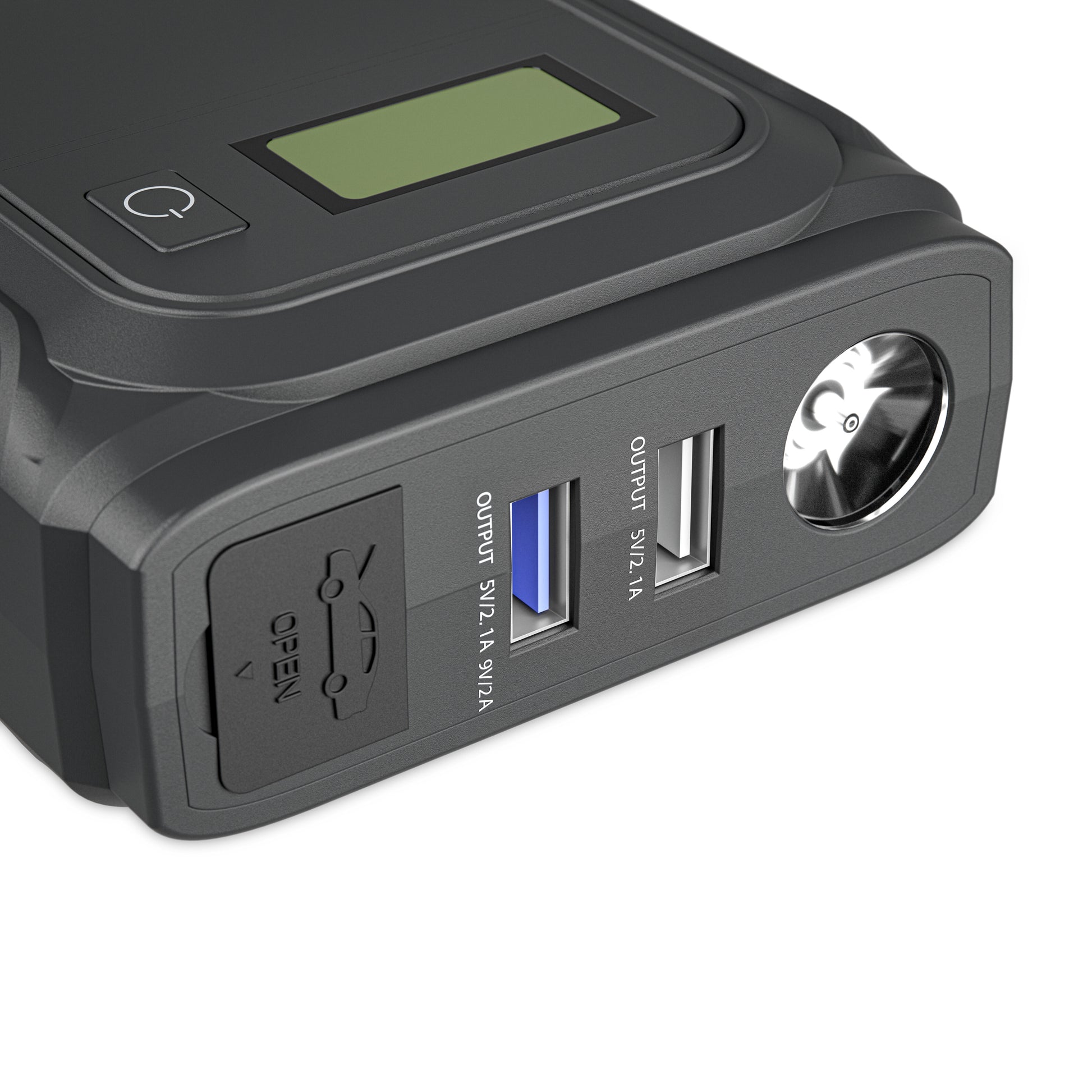 - Komplettsatz inklusive Powerbank, Startklemmen, Wandladegerät, Ladegerät für Fahrzeug und USB-Kabel