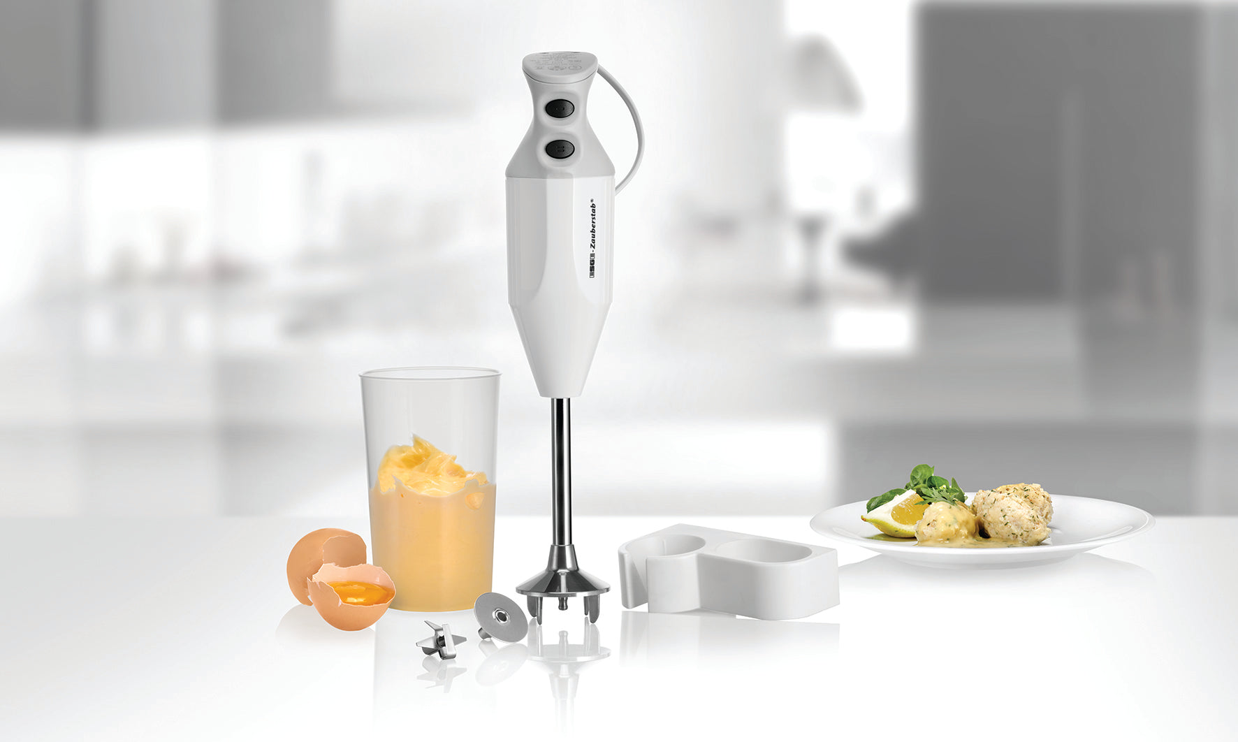 Von A wie aufschäumen bis Z wie zerkleinern ist der ESGE-Zauberstab® M 122 S der nimmermüde Küchenhelfer. In die Küche zieht er mitsamt der praktischen Wandhalterung ein und hat neben dem Multimesser fürs Hacken, Zerkleinern und Pürieren auch die Schlagscheibe im Gepäck, mit der Sahne oder Eischnee steif geschlagen oder auch Milch aufgeschäumt werden kann. Weiteres Gepäckstück des Kraftpakets mit zwei Tempo-Stufen (10.000 oder 14.000 Umdrehungen pro Minute) ist der praktische 600 ml-Messbecher.Durch die praktische Aufsteckzentrierung lassen sich Multimesser und Schlagscheibe ganz easy aufstecken und dann legt der leistungsfähige AC-Motor „Made in Switzerland“ im ergonomisch gestalteten Griffelement auch gleich los. Nach dem Einsatz den Stab und das Aufsteckteil einfach unter heißem Wasser reinigen, dann ist der ESGE-Zauberstab® M 122 S wieder einsatzbereit für die nächste kulinarische Herausforderung!Durch das circa 160 cm lange Kabel sorgt der ESGE-Zauberstab® M 122 S für Bewegungsfreiheit in der Küche und kommt in Begleitung von Bedienungsanleitung und inspirierenden Rezepten ins Haus, „garniert“ mit fünf Jahren Garantie!