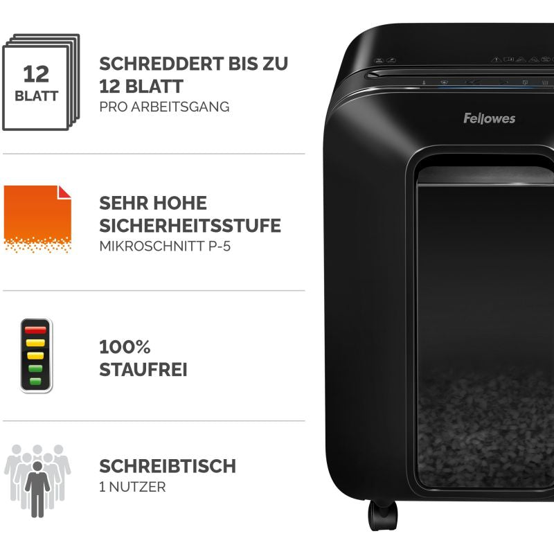 Fellowes Powershred LX201 Aktenvernichter MicroCut 12 Blatt 2x12mm P-5 Schwarz