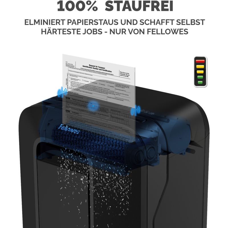 Fellowes BF5050001. Aktenvernichter Größe: 12 mm, Korbvolumen: 22 l, Anzahl der Räder: 4 Rad/Räder