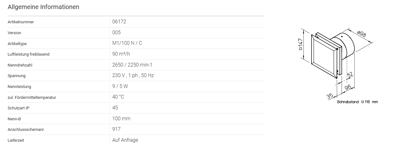Universell einsetzbar für die Lüftung von Bad, WC und anderen kleinen Räumen.