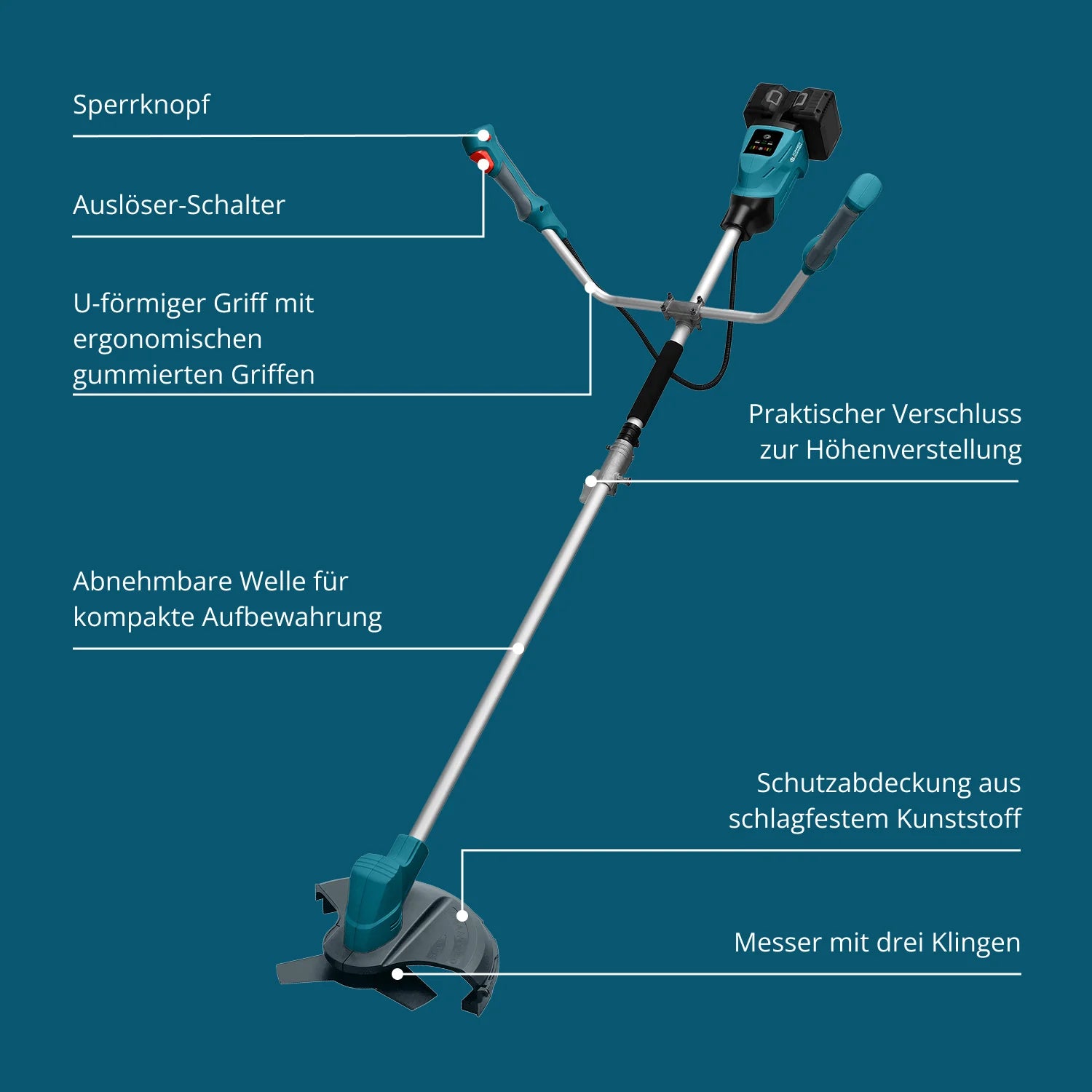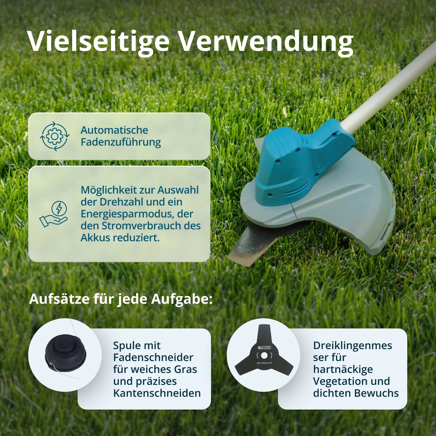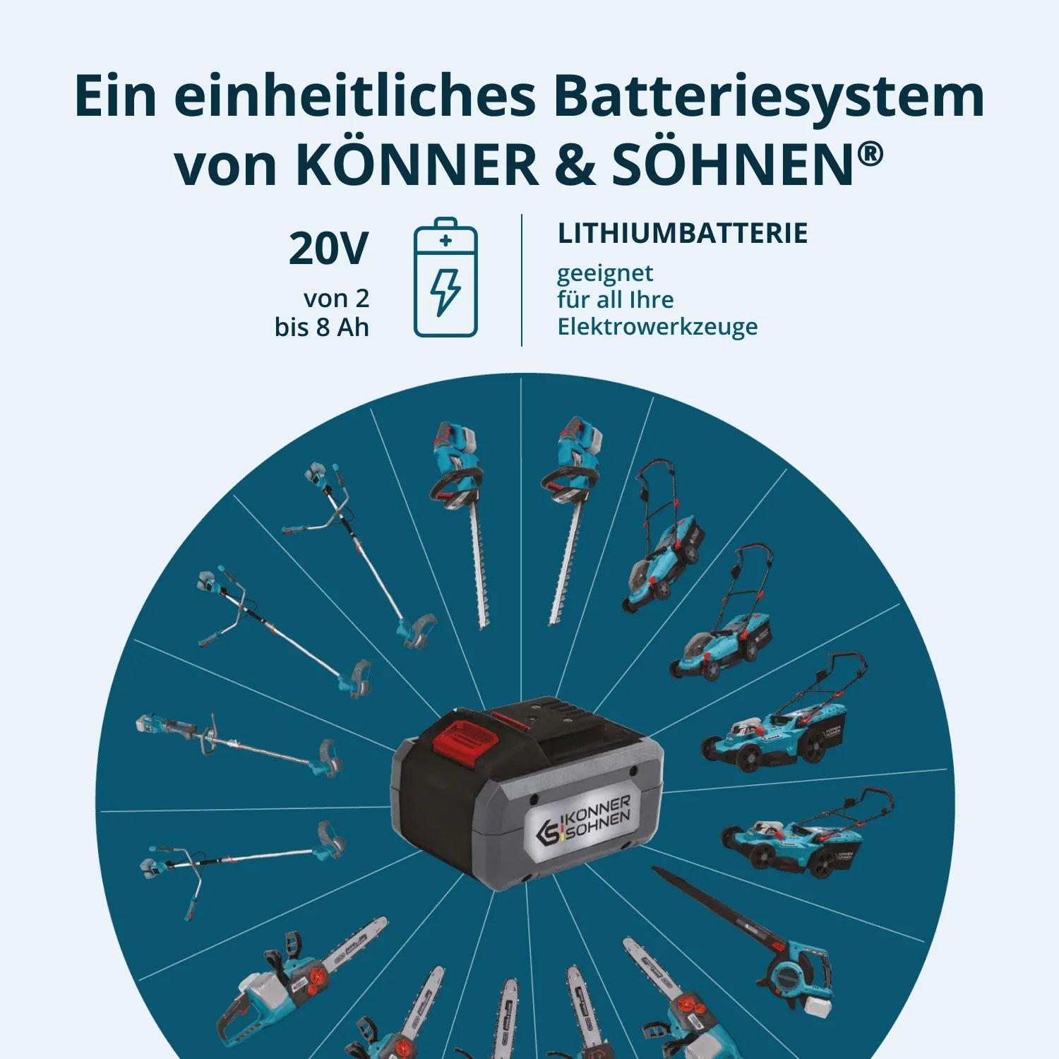 Die Akku-Trimmer von Könner & Söhnen®werden von 20V/40V 2 bis 8 Ah Lithium-Ionen-Akkus angetrieben, die sich durch eine schnelle Ladegeschwindigkeit und damit reduzierte Ausfallzeiten auszeichnen.