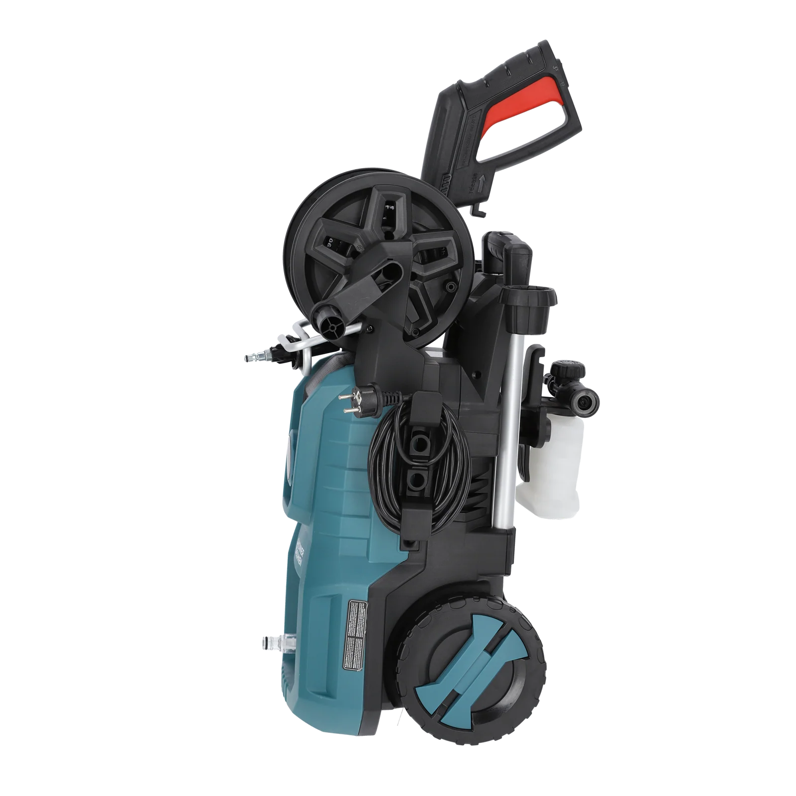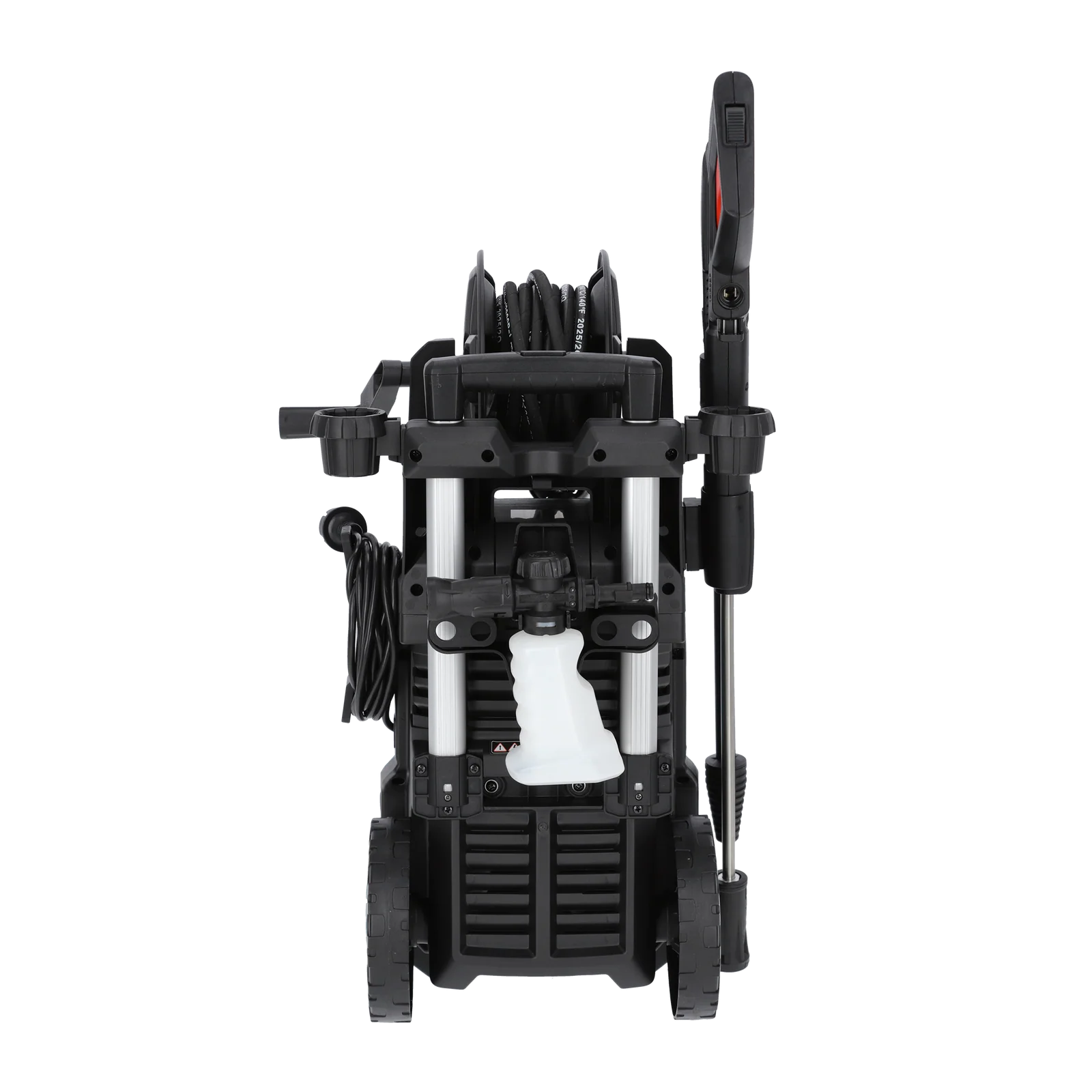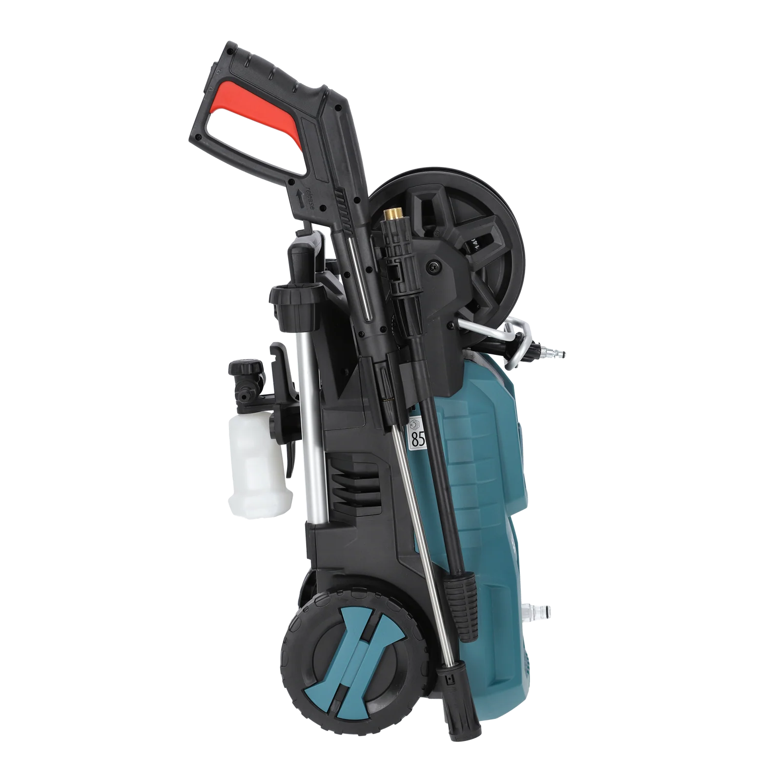 Ausrüstung | Spritzpistole mit Schnellkupplung, Turbodüse, 8-m-verstärkter Hochdruckschlauch, 5-m-Netzkabel, Wasserfilter, Reinigungsnadel, Schaumsprüher, Rotordüse |