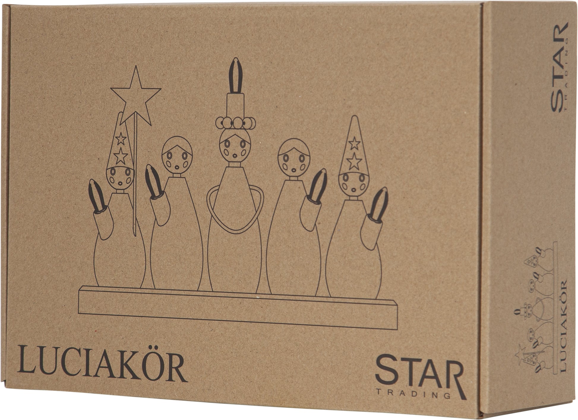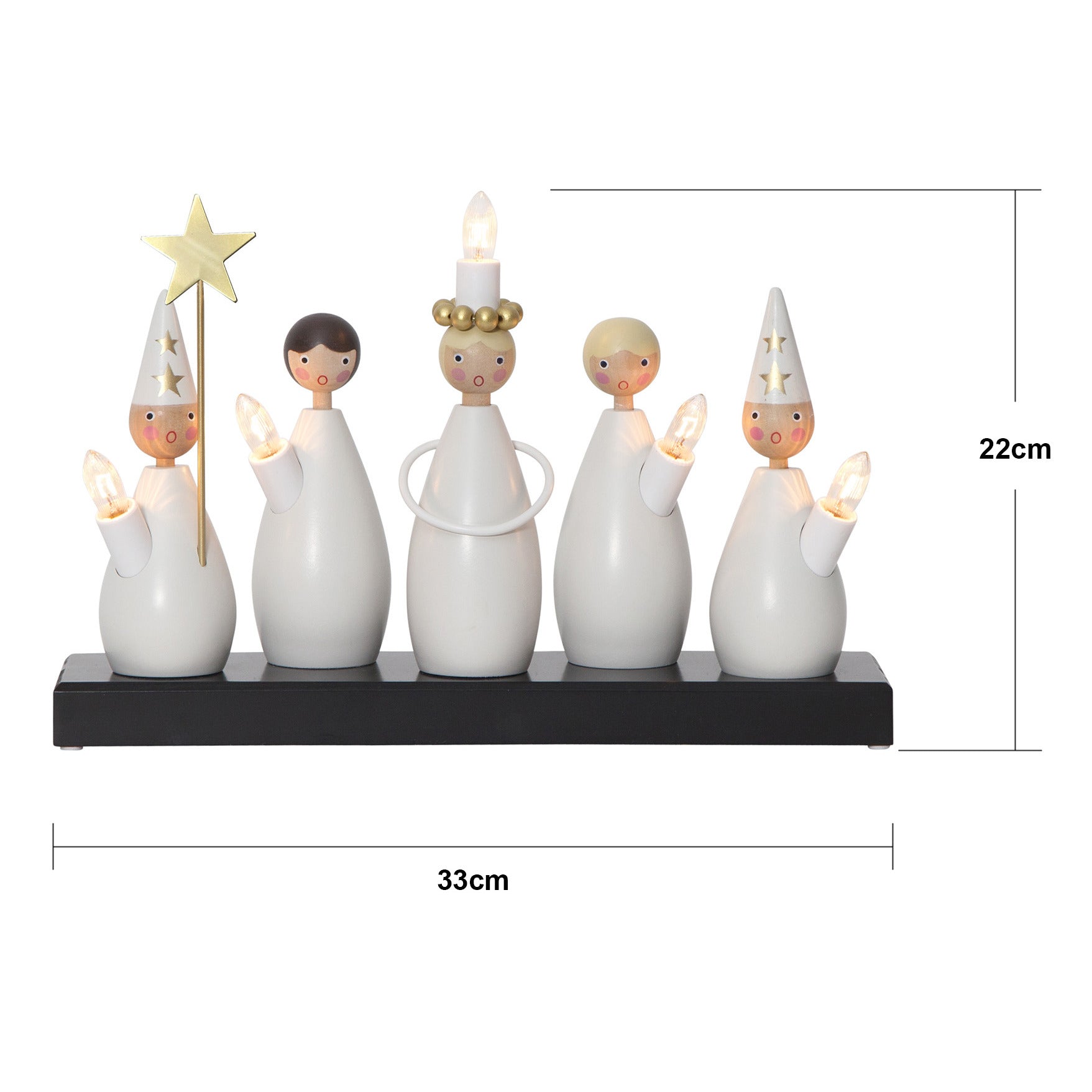 Star Trading Fensterleuchter "Luciakör" 5-flammig, Material: Holz, weiß, ca. 22x33 cm, mit Trafo, Vierfarb-Karton